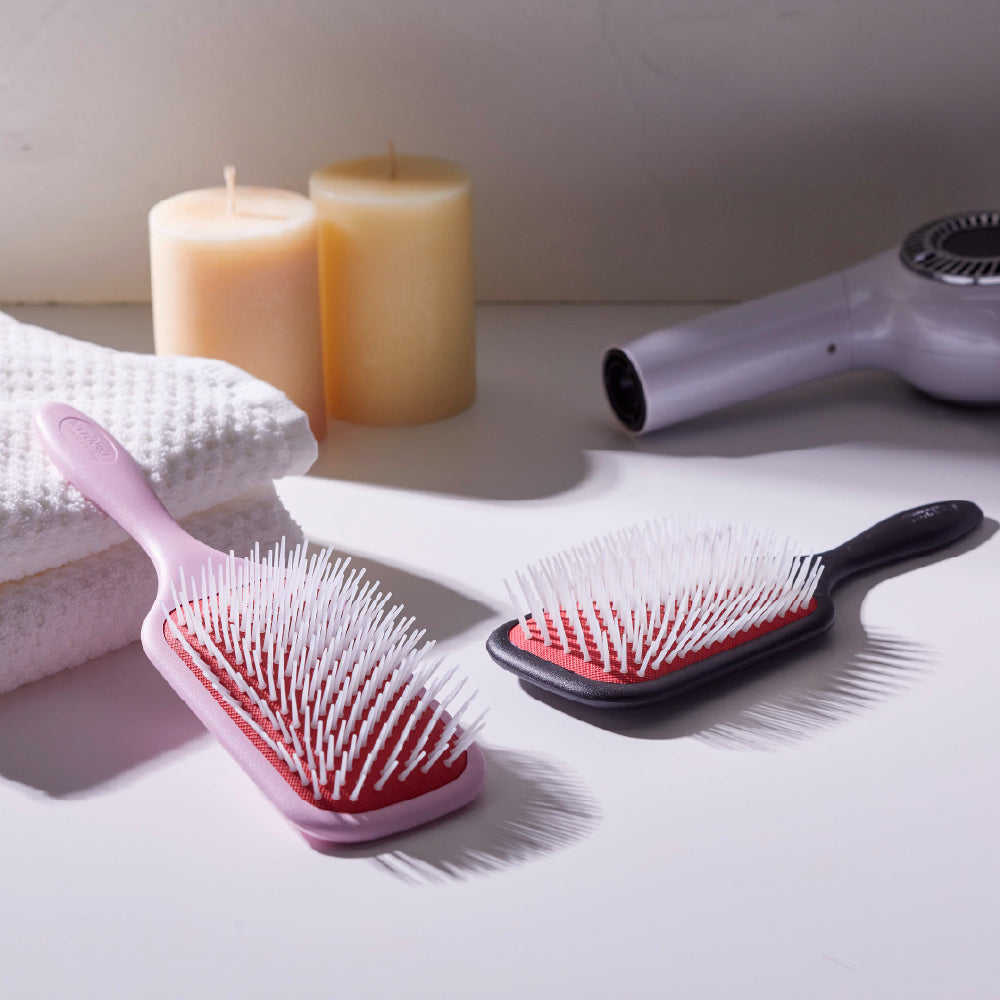 表面積の広いパドル形状により、一度のストロークで多くの髪をキャッチ。 ドライヤーの風を効率良く当てられる、乾燥性が高く、ブロー時間を大幅に短縮します。