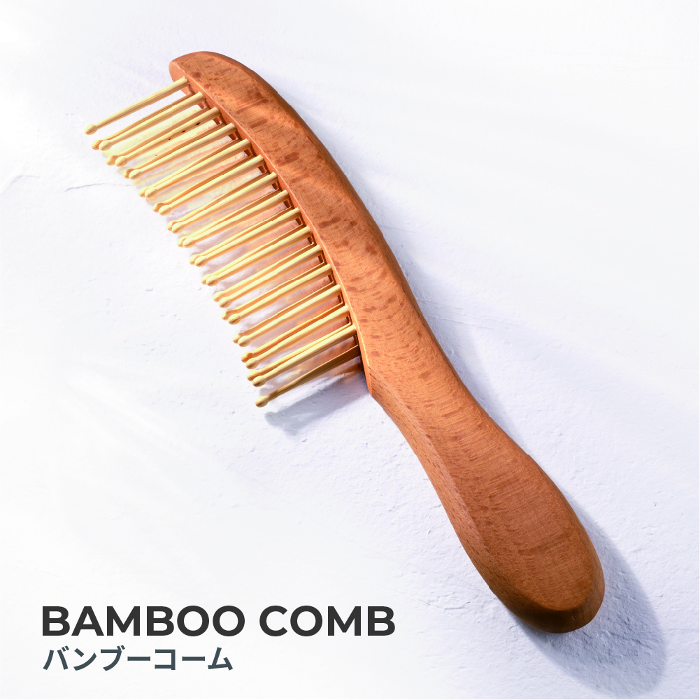 天然素材バンブーを使用して作ったパドルブラシ柔らかい絶妙なクッション性で頭皮にフィットし気持ちいい刺激を与えます。ピンの配置にもこだわり、櫛通りよくブラッシング時のダメージ軽減します。自然の油分が髪と地肌に働き質感を作り、まとまりのある綺麗な髪の毛を作ります。